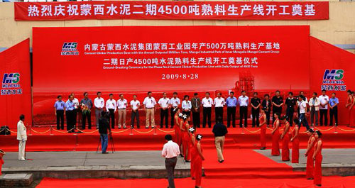 8月28日上午,蒙西水泥股份公司生產經營中心鮮花怒放、彩旗飄揚,內蒙古蒙西水泥集團蒙西工業(yè)園年產500萬噸熟料生產基地二期日產4500噸水泥熟料生產線開工奠基儀式在這里隆重舉行。